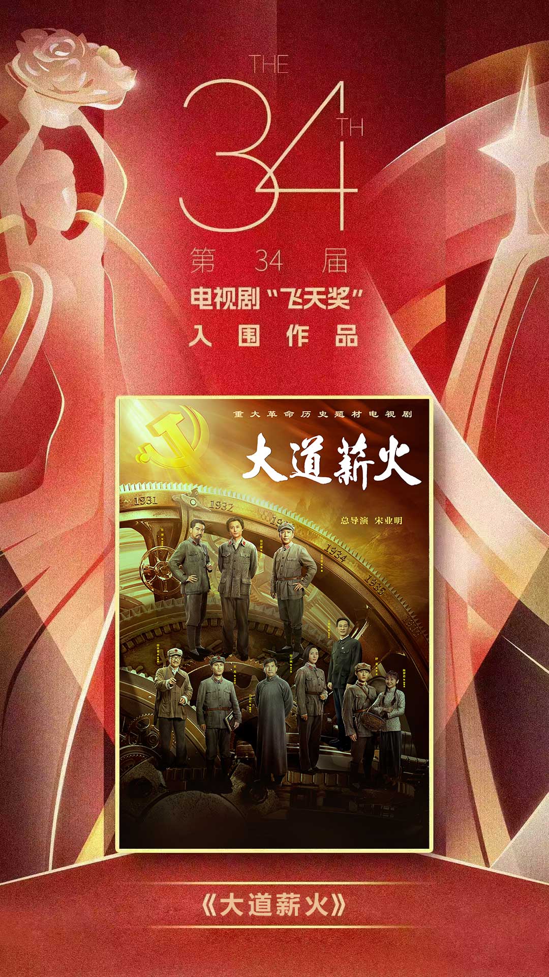 9月11日,第34屆電視劇“飛天獎(jiǎng)”、第28屆電視文藝“星光獎(jiǎng)”頒獎(jiǎng)典禮新聞發(fā)布會(huì)在北京舉行。由我公司出品攝制的重大革命歷史題材電視劇《大道薪火》成功入圍入圍本屆“飛天獎(jiǎng)“。