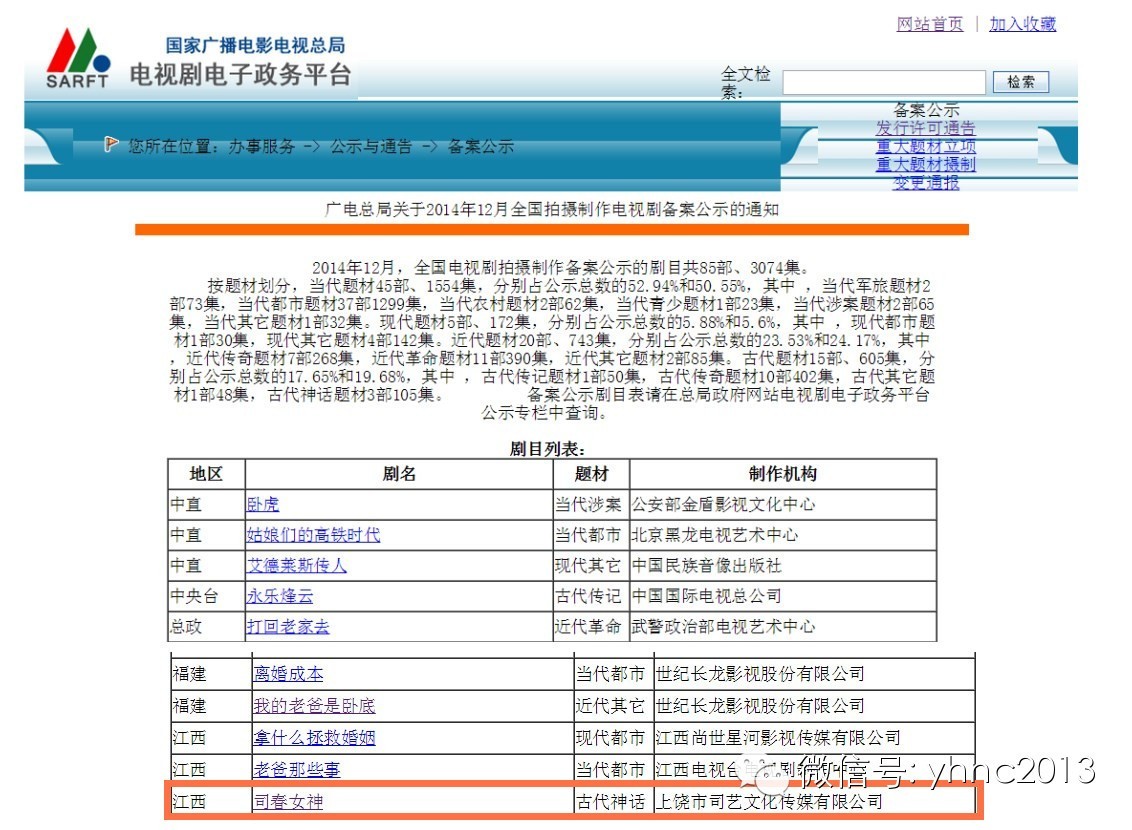 神話電視劇《司春女神》在廣電官網(wǎng)公示