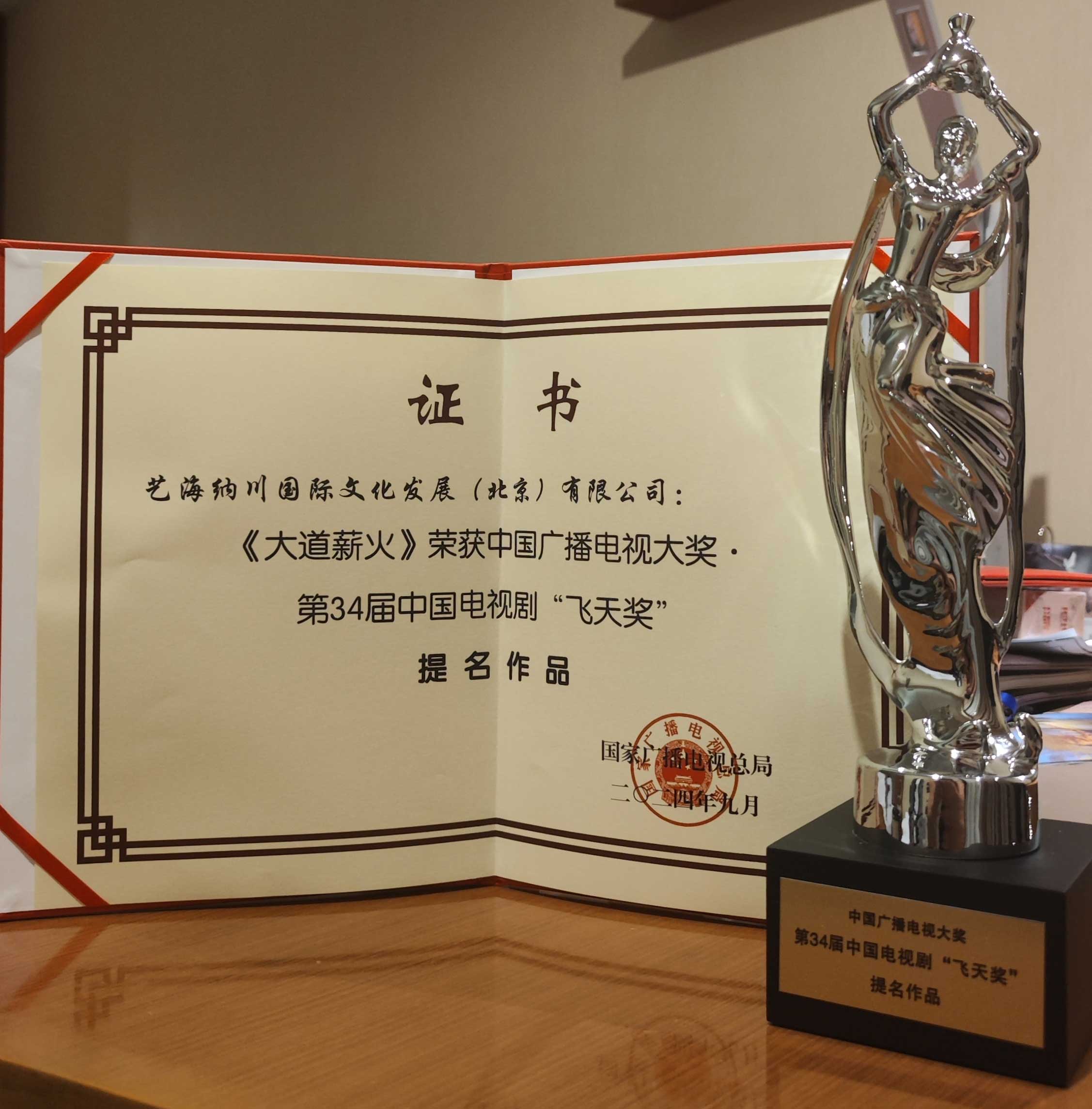由我公司出品制作的重大革命歷史題材電視劇《大道薪火》榮獲“優(yōu)秀電視劇獎(jiǎng)”提名榮譽(yù)。